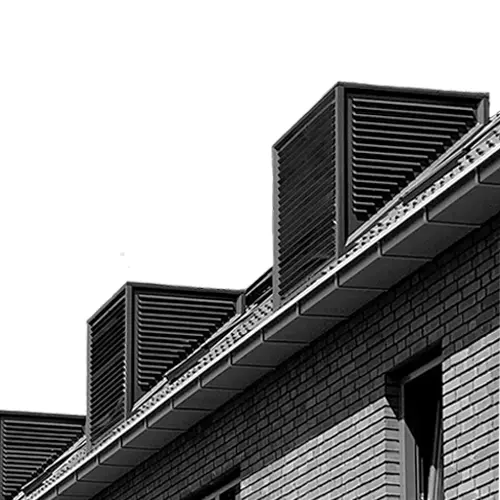 Le passage de toiture multifonctionnel est une cheminée entièrement conçue en aluminium et là-dedans différents passages sont combinés. La débouchure s’effectue à différents niveaux, toujours séparée par une plaque horizontale.
